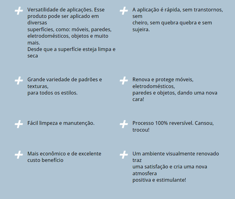 - Espessura: 0,15mm, protege a superfície além de dar um acabamento diferenciado.